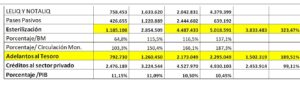 No es eficiente porque no da debida respuesta y en forma rápida a la conversión del ahorro en crédito. No es eficaz porque el crédito es el menor desde que se creó el BCRA en 1933 y comenzara a funcionar, salvo puntuales meses de los años de crisis económica (1959; 1975; 1982; 1989; 2002) el total de préstamos bancarios al sector privado, que había descendido para ser en torno al 11% del PIB en el año 2019 (en 1974 representaba el 41% del PIB), no solo no se restableció, sino que incluso desciende en más de medio punto del PIB en la actualidad. Y encima el poco crédito que genera lo hace a una tasa confiscatoria del capital de las empresas, mientras los depósitos captados abonan tasas menores a la inflación. Y no es económico no solo por el alto costo del dinero que se refleja en las tasas activas de interés, sino que se convierte en una verdadera restricción y una carga para todo el sistema económico en general y, para el Estado en particular, dado que a través de las inmovilizaciones del BCRA en Leliq (Letras de Liquidez del BCRA) y Notaliq (notas de [1]liquidez del BCRA) no solo no se genera crédito, sino que se convierte en un encaje remunerado que al ser devengado, se suma al monto original, configurando un déficit cuasi fiscal (o déficit del BCRA) que es mayor que la totalidad del dinero emitido y puesto en circulación por la autoridad monetaria (Base Monetaria) [1] Una Letra de Liquidez del Banco Central (Leliq) es un préstamo que toma el Banco Central de la República Argentina (BCRA) con los bancos por una semana o más días A diferencia de las Lebac (Letras del BCRA), que las podían adquirir cualquier persona, las Leliq sólo están disponibles para las entidades financiera y reemplazaron a las Lebac en enero de 2018, pero tomaron especial relevancia desde octubre de ese año. Las Notaliq es también un préstamo que toma el BCRA de los bancos, nacieron el 22 de febrero de 2022 a seis meses y se fija su tasa de interés casa 28 días.