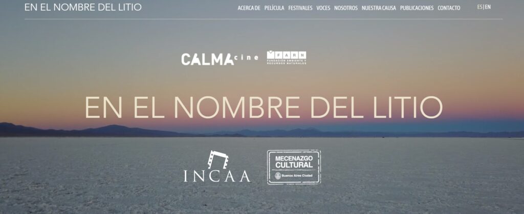 «En el nombre del litio» es una producción de Calma Cine y Farn, dirigido por Tian Cartier y Martín Longo; y Pía Marchegiani como Directora del equipo de investigación de Farn. Cuenta con el apoyo del Instituto Nacional de Cine y Artes Audiovisuales y de Mecenazgo Cultural del Ministerio de Cultura del Gobierno de la Ciudad de Buenos Aires.