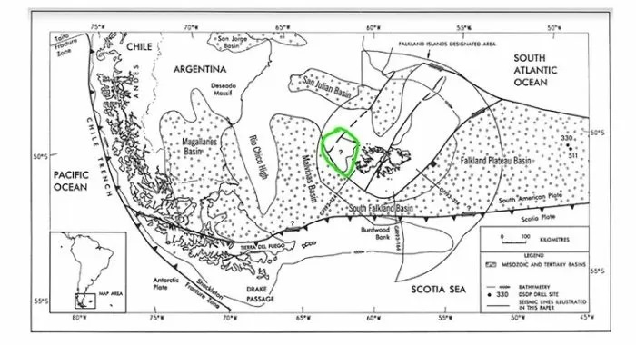 Como segundo paso, se puso en contacto con geólogos británicos expertos en Malvinas. En principio, encontró tensión, poca voluntad para colaborar. Hasta el momento, los ingleses casi ni le habían prestado atención a la geología submarina que rodea las islas. En uno de los pocos trabajos, los autores reconocían que había algo misterioso, sin explicación, al noroeste. Allí es donde ubicaron la cuenca y ahí es donde agregaron un signo de interrogación.