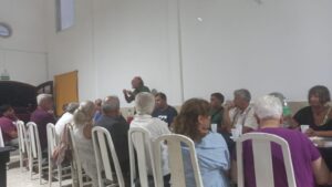Reunión Zonal en Villa Gesell contra el DNU gubernamental y preparatoria de futuras movilizaciones convocadas por la CGT del Tuyú, la CTA del Tuyu (La Costa, General Lavalle, Pinamar, Villa Gesell y General Madariaga tanto en una como en otra entidad), la Multisectorial de Villa Gesell, Representantes del Partido Justicialista de Villa Gesell, de Nuevo Encuentro y otros militantes políticos y Sindicales. La Reunión se realizó en un salón de Fiestas para sus afiliados y familiares, del Sindicato de Municipales de Villa Gesell.
