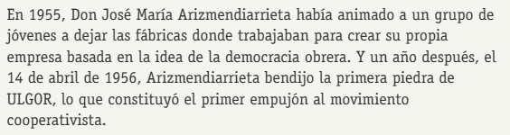 Su gestor, el cura José María Arizmendiarrieta decía que hacer cooperativismo: