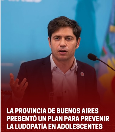 La Provincia de Buenos Aires presentó este lunes el Plan Integral de Prevención de la Ludopatía en adolescentes en una conferencia de prensa realizada en el Salón Dorado de la Gobernación, encabezada por el ministro de Gobierno, Carlos Bianco junto al ministro de Salud, Nicolás Kreplak, el director general de Cultura y Educación, Alberto Sileoni, el ministro de Seguridad, Javier Alonso, el ministro de Justicia y Derechos Humanos, Juan Martín Mena, y el presidente del Instituto Provincial de Lotería y Casinos, Gonzalo Atanasof.