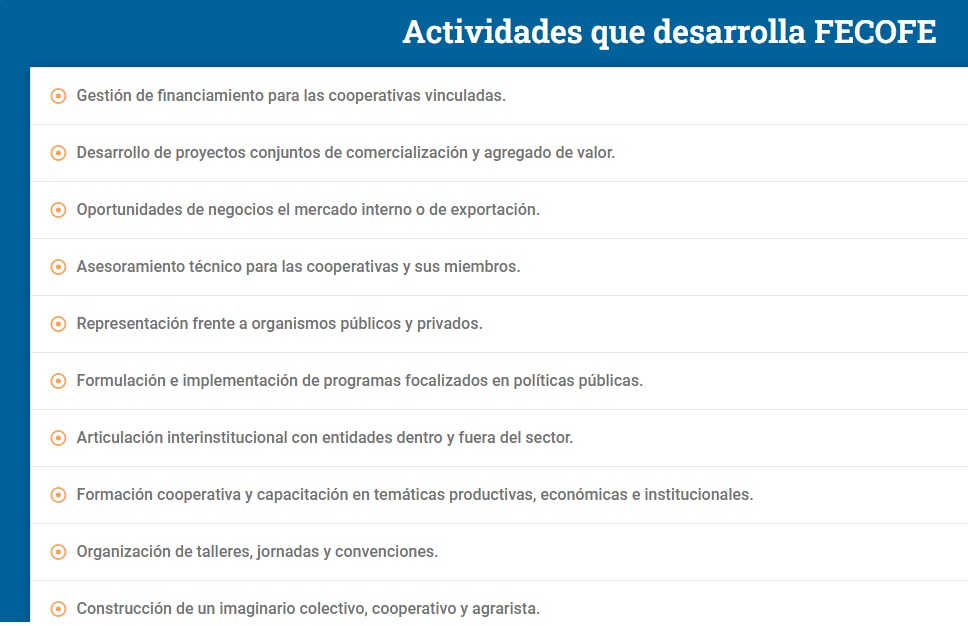 Nuestra razón de ser son las cooperativas y los pequeños y medianos productores asociados, comprometidos en prácticas de intercooperación orientadas al agregado de valor en origen y contextualizadas en procesos de desarrollo territorial rural con industrialización.