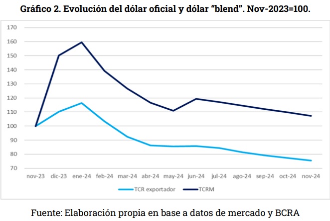 Además, por ser actividades que en gran medida destinan su producción a las exportaciones, a comienzos de mandato fueron sectores muy beneficiados por la devaluación de diciembre de 2023, y por la continuación del dólar blend. No obstante, el posterior proceso de apreciación cambiaria y, en el caso del sector agropecuario, la caída de los precios internacionales hizo que en los últimos meses esa mayor rentabilidad inicial fuera diluyéndose.