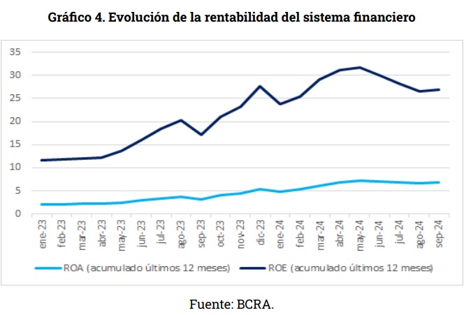 Además de los sectores ya mencionados en las secciones previas, se destaca el sector Financiero. El crecimiento del crédito al sector privado, la eliminación de la tasa de interés mínima para los plazos fijos —que permite un incremento en el spread entre tasas activas y pasivas— y los beneficios de la valorización financiera de sus carteras dieron lugar a una rentabilidad creciente durante todo 2024.