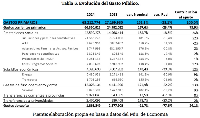 Sin embargo, por su magnitud, el peso del ajuste recae principalmente sobre las Prestaciones Sociales (36%), en donde Jubilados y Pensionados se llevan la peor parte (22%).