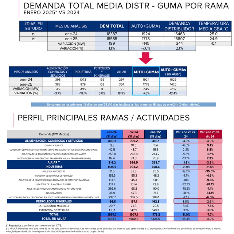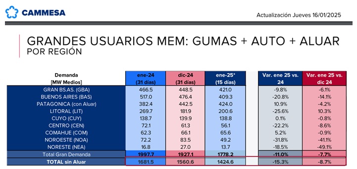 Fuente de los datos: Informes de Demanda de grandes Usuarios del MEM de CAMMESA de diciembre 2024 y enero 2025