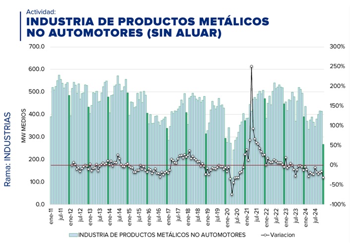 Se puede apreciar también la caída de demanda provocada por la pandemia, su recuperación posterior y la caída desde fines del 2023 y que diciembre de este año es el de más baja demanda de los grandes usuarios de los últimos 14 años.