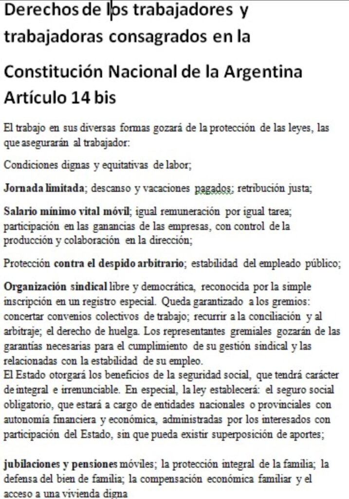ART. 14 BIS de la Constitución Nacional Argentina