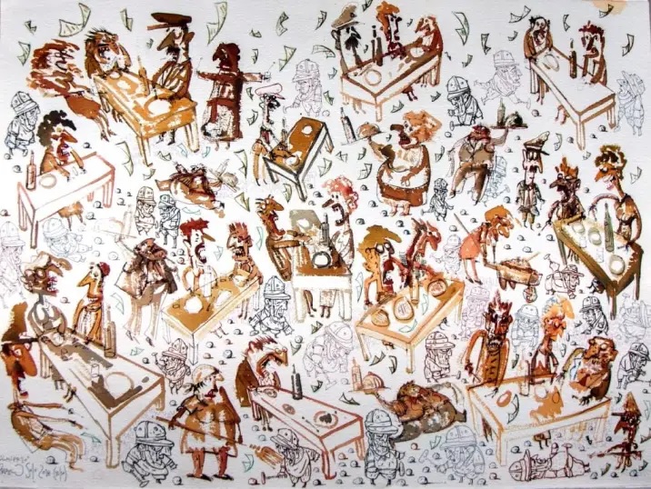 Son muy pocos los mortales que gozan de un gran talento, y mucho menos aquellos que tienen más de uno. Allí, en Las Flores, provincia de Buenos Aires, se encuentra Pablo Solo Díaz, artista plástico y payador, pero también guitarrista, maestro de arte en escuelas rurales, titiritero y “un poco actor”, más allá de que asevera no creer “en ninguna clase de etiquetas”. Nacido en 1959, egresado de la Escuela Nacional de Bellas Artes Manuel Belgrano como maestro nacional de dibujo y perfeccionado con la pintora Cristina Arraga, comenzó su trayectoria en la pintura cuarenta años atrás, en 1986, con la muestra de dibujos y grabados “Los desaparecidos de la conquista del desierto”, título que tomó de una reflexión de David Viñas en Indios, ejército y frontera, y fruto de tres años de cruzar a caballo la provincia de Buenos Aires y La Pampa releyendo a Lucio V. Mansilla. A esta muestra le siguieron una gran cantidad de exposiciones individuales y colectivas, entre las que se destacan “Croteadas” (2014), “Desparramando incertidumbres” (2018) y “El Tungo 20 años” (2016), en la que se recopilan las tiras de humor gráfico de su autoría publicadas en el periódico Acción Regional, que pueden verse en línea en el Mapa del Arte, en su propio blog y en sus redes sociales.